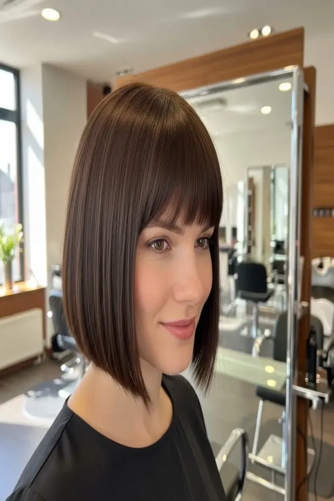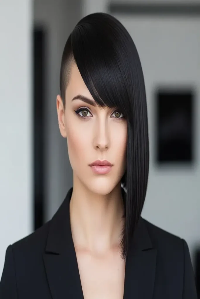 This cut works beautifully on straight hair, emphasizing its sharpness. It’s a statement-making style often chosen by women who want to stand out. Pair it with sleek styling and bold makeup for maximum impact.