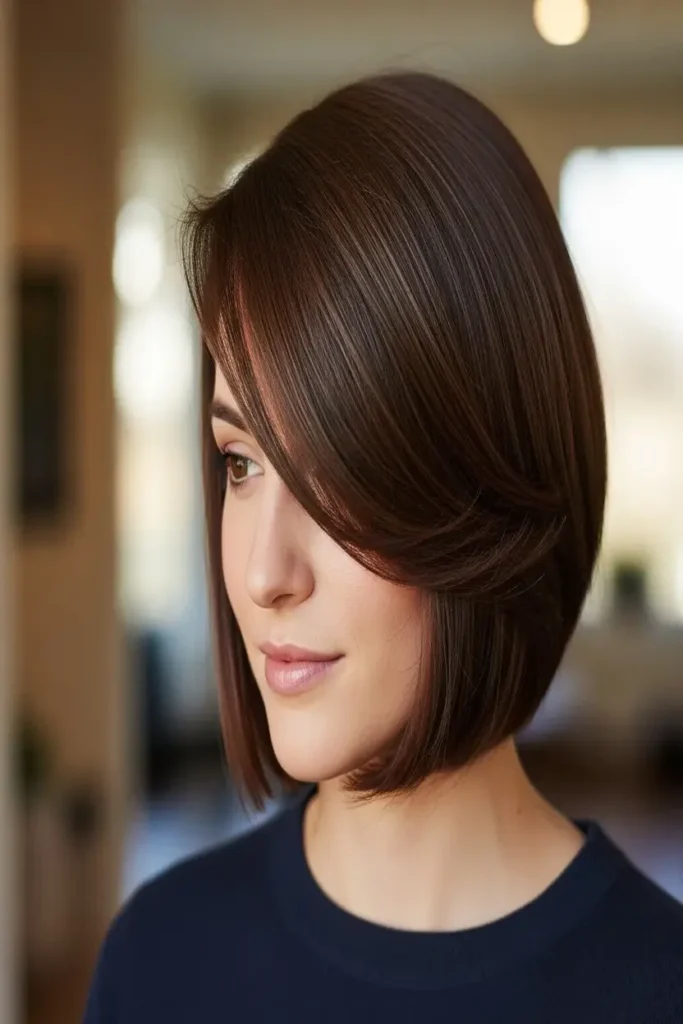 For those craving a bold, fashion-forward look, the asymmetrical blunt cut is a daring choice. One side is slightly longer than the other, creating an edgy and modern silhouette.