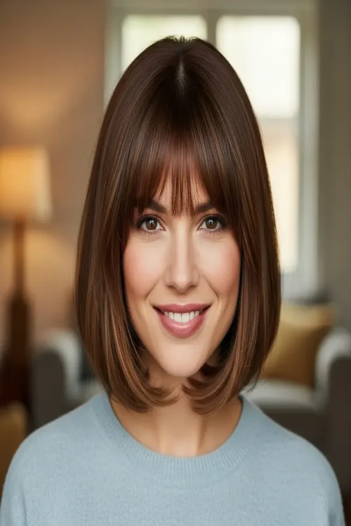 This variation is perfect for hiding a larger forehead or balancing facial proportions. It also works across textures—straight hair looks edgy with blunt bangs, while wavy or curly hair paired with soft bangs feels effortlessly chic and approachable.