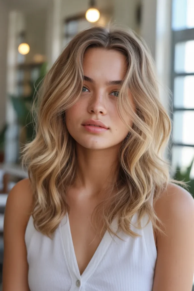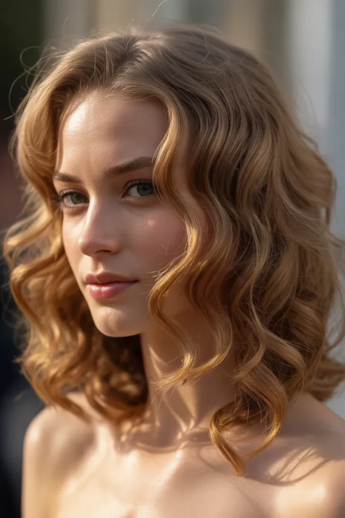 Nothing says casual elegance quite like beach waves. This style adds volume and movement, making your medium-length hair look naturally tousled and full of life. To achieve this, apply a sea-salt spray to damp hair, scrunch the ends, and let it air dry or use a diffuser. The soft, undone texture gives you that sun-kissed, breezy vibe perfect for everyday wear.