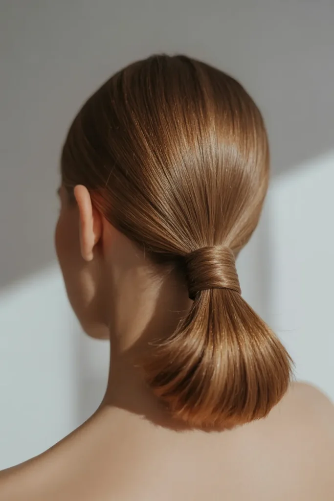 The elegant low ponytail is perfect when you want a sleek, refined look that doesn’t require much effort. Straighten your hair, gather it low at the nape of your neck, and secure with a thin elastic or ribbon.