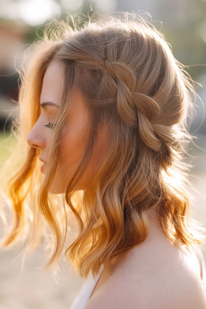 This hairstyle works beautifully for weddings, festivals, or outdoor picnics. Medium hair provides the ideal amount of volume to make the braid stand out without feeling heavy.