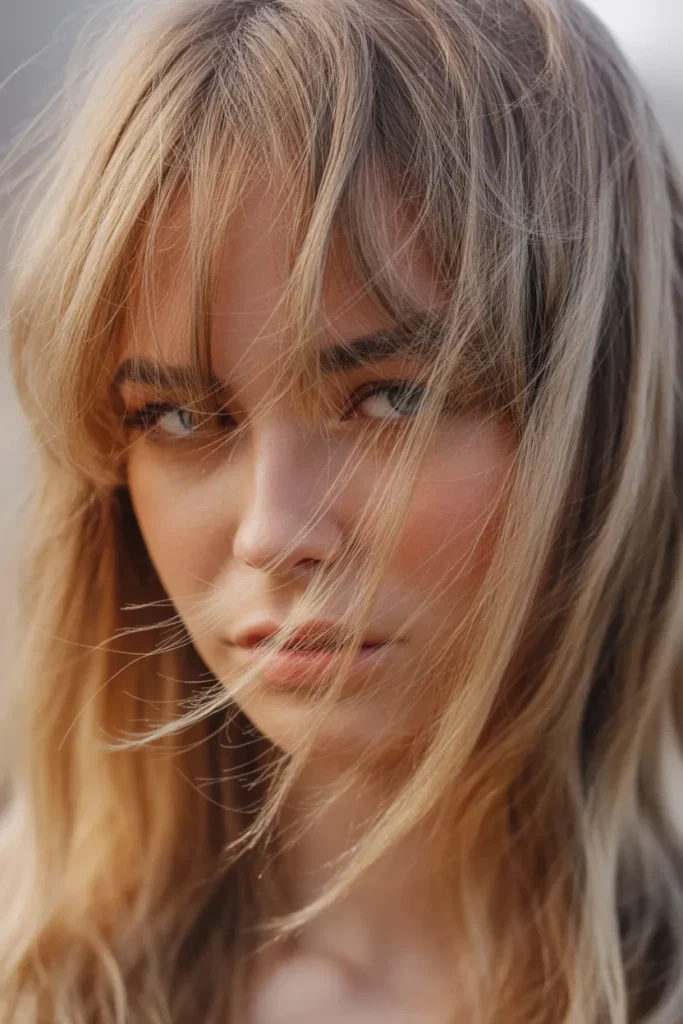 17. Soft Curtain Bangs with Loose Ends