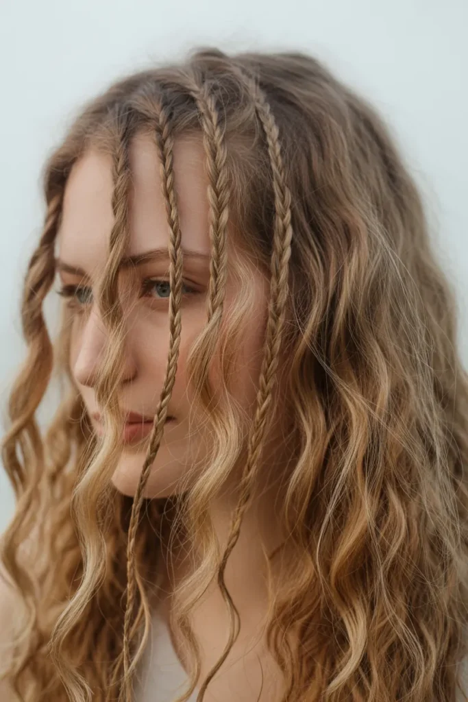 Add playful detail to your hair by weaving tiny braids throughout your loose locks. These mini braids create a bohemian feel and look amazing paired with subtle waves or a straight texture.