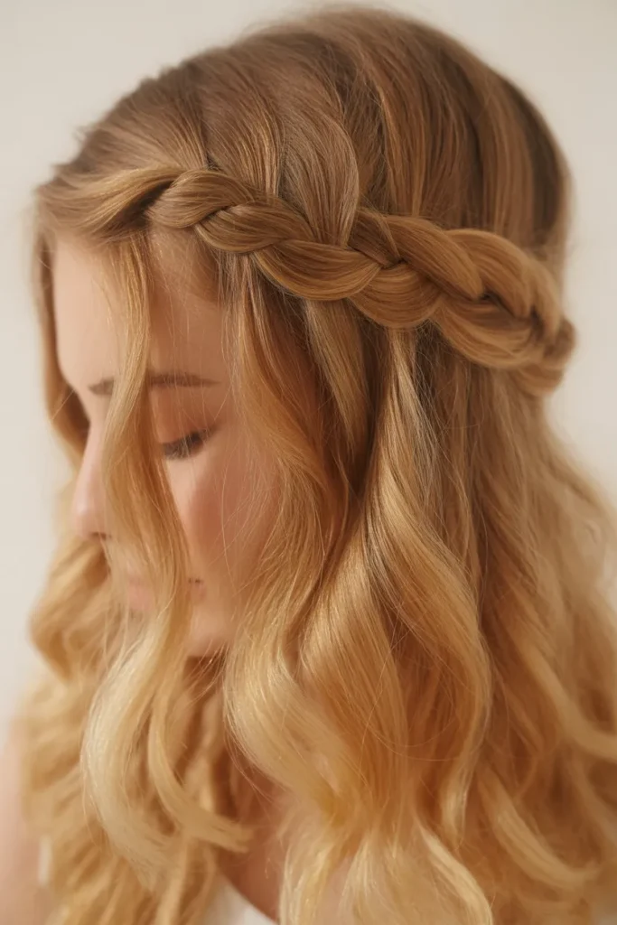 The braided headband is a creative and elegant way to elevate your hairstyle. Simply take a small section from behind your ear, braid it, and wrap it over the crown like a headband. Pin it securely and let the rest of your hair flow naturally.