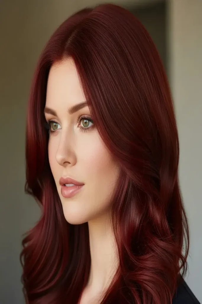 This color looks especially beautiful in glossy, straight hairstyles, where the red undertones shine under natural light. Mahogany red is also low-maintenance compared to brighter reds, making it a practical yet striking option.
