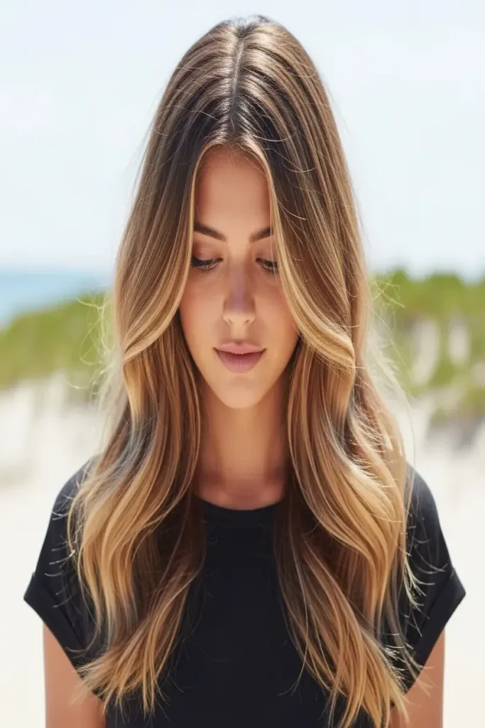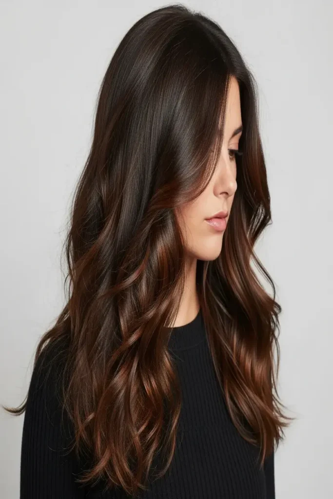 Chestnut balayage combines deep brunette roots with chestnut highlights for a natural, sunlit effect. It’s a versatile and universally flattering choice for women who want warmth and dimension without dramatic upkeep.