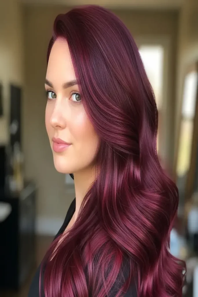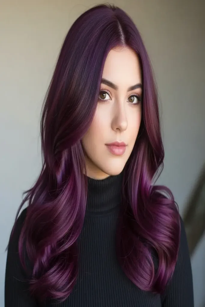 Plum purple pairs beautifully with darker roots, making upkeep easier while still keeping the look vibrant. It’s an excellent choice for fashion-forward women looking to showcase individuality and confidence this season.