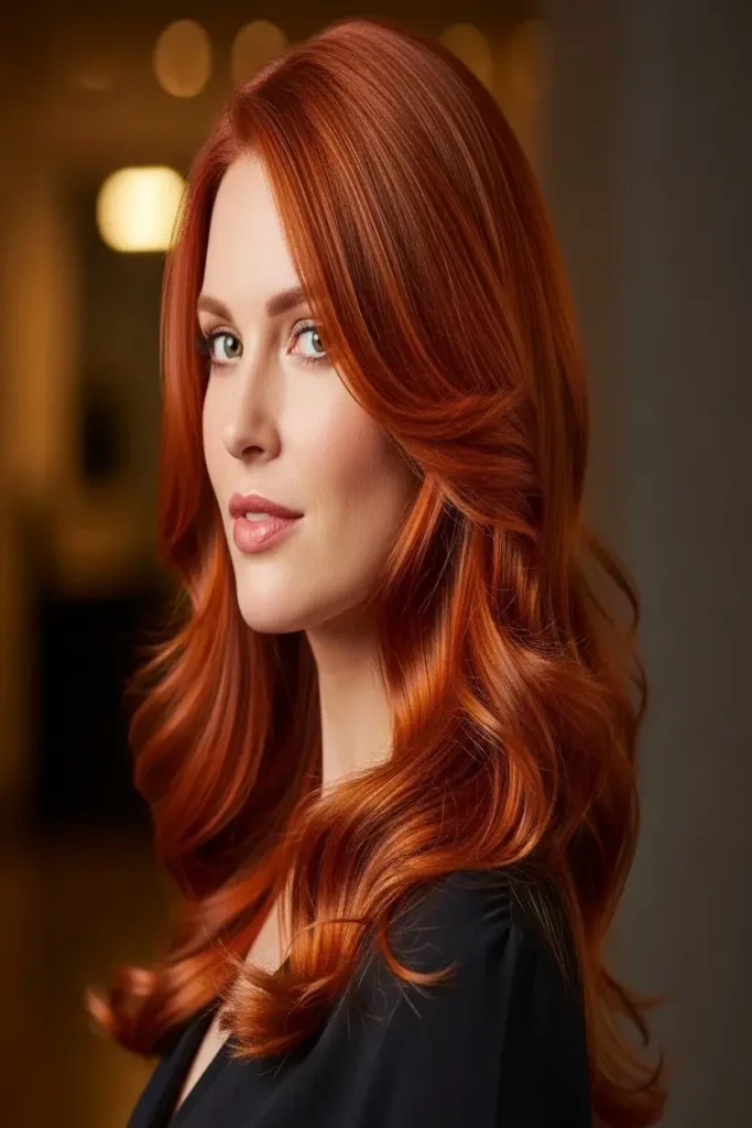 Few shades capture the spirit of fall as perfectly as copper red. This fiery, glowing hue reflects the colors of autumn leaves, making it one of the boldest and most eye-catching choices for the season. It’s especially flattering on fair to medium skin tones, enhancing warmth and adding radiant dimension.