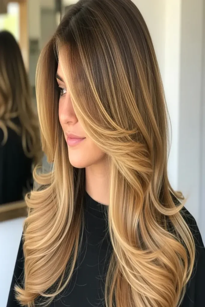The root melt technique combines darker roots with gradually lighter, golden ends for a seamless finish. It’s stylish, low-maintenance, and perfect for women who don’t want constant salon visits.