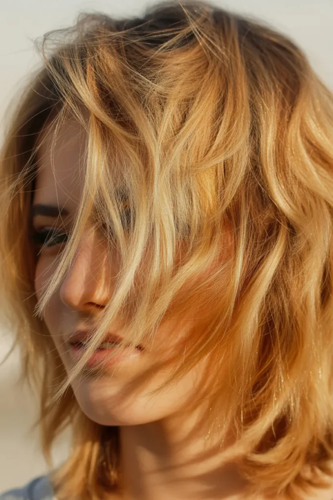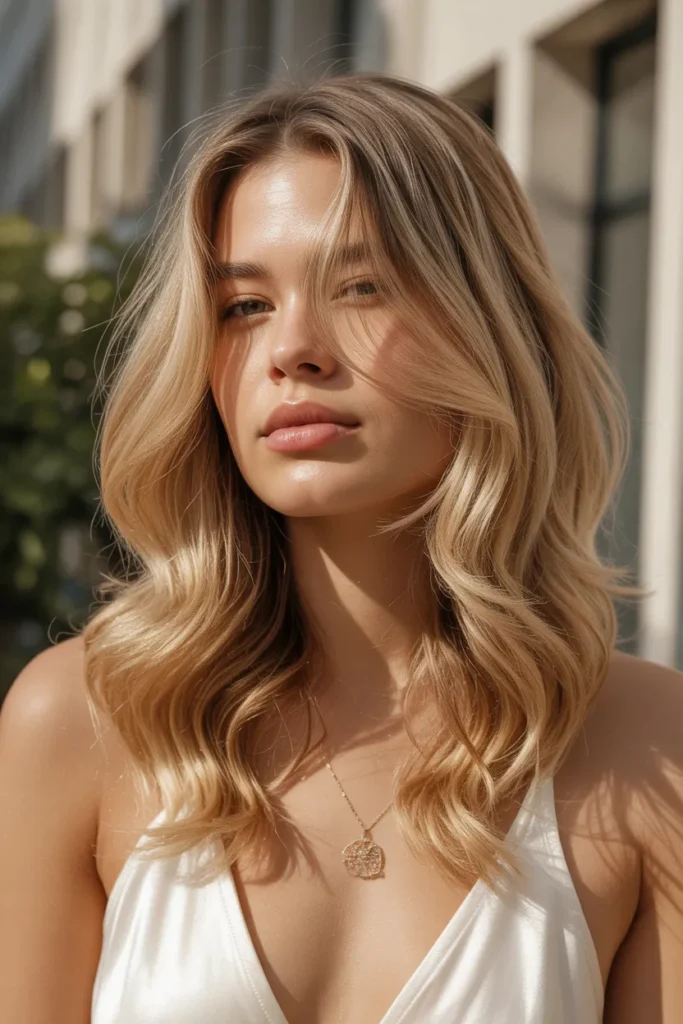 This hairstyle’s beauty lies in its authenticity—it looks like the effortless result of days spent outdoors. It’s an everyday-friendly option among the 22 medium length blonde hairstyles, perfect for those who embrace natural beauty and laid-back elegance.