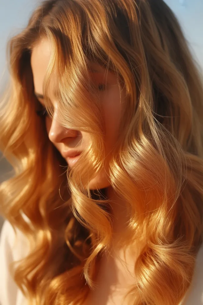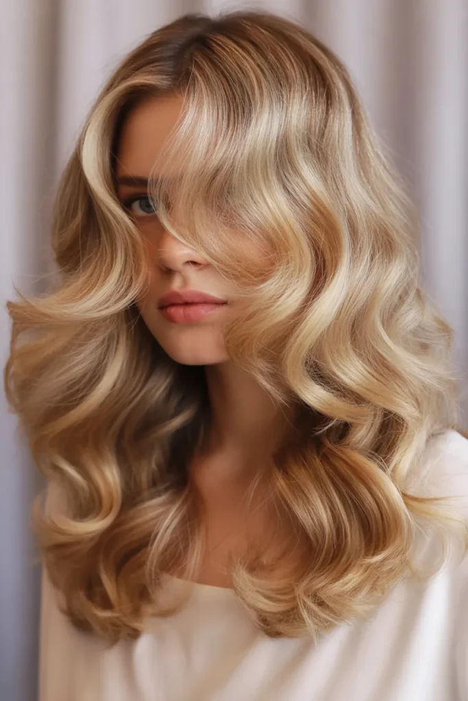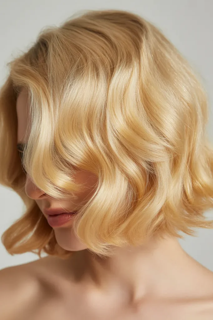 Honey blonde waves are a timeless option that radiate warmth and natural shine. This shade flatters nearly every skin tone, adding depth and softness to medium-length cuts. To achieve this look, use a large-barrel curling iron for loose, romantic waves, and finish with a shine-enhancing serum to highlight the golden tones.