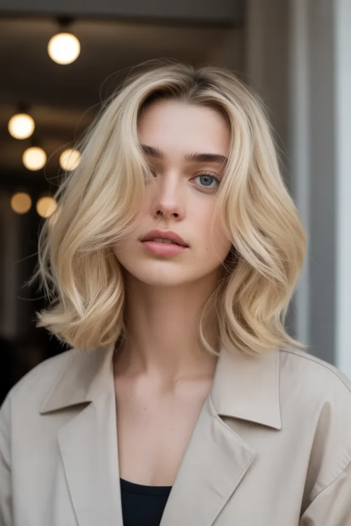 This style is ideal for minimalists who want their hair to look effortlessly refined. It’s subtle but impactful, making it one of the most versatile medium length blonde hairstyles of the season.