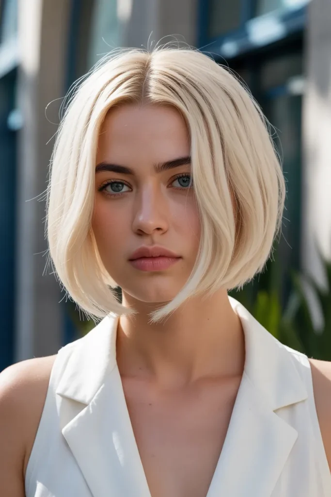 If you’re drawn to bold, fashion-forward styles, a platinum blonde blunt bob is your best match. The sharp edges of a blunt cut give your hair a polished, modern finish, while the icy blonde tone adds a daring twist. It exudes confidence and is a favorite among celebrities and trendsetters.