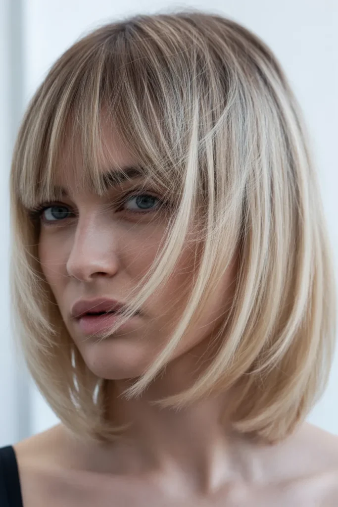 The ash blonde lob (long bob) is the epitome of modern cool. Its muted, smoky tones give an edgy yet refined aesthetic that pairs beautifully with medium-length hair. A blunt or slightly angled lob adds structure and highlights your facial features elegantly.
