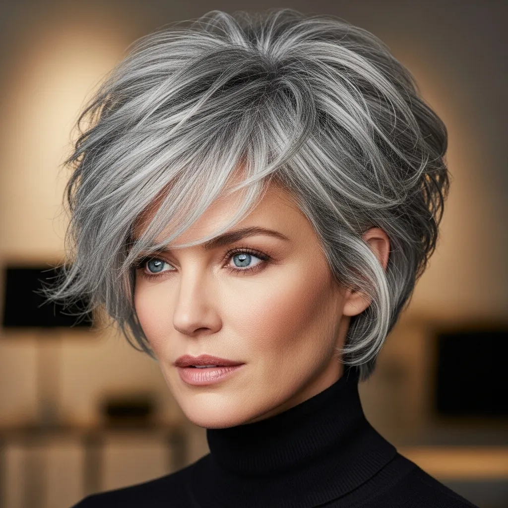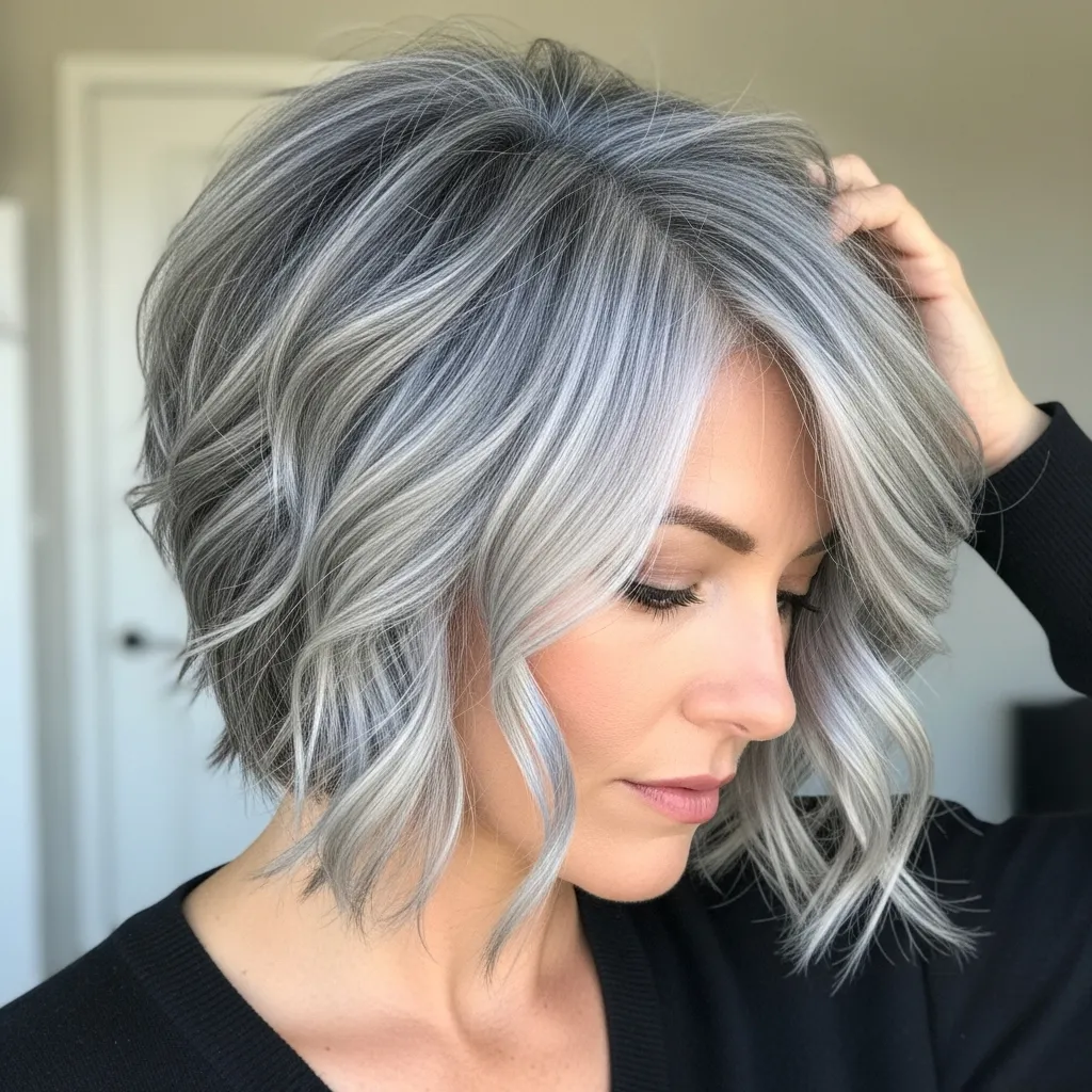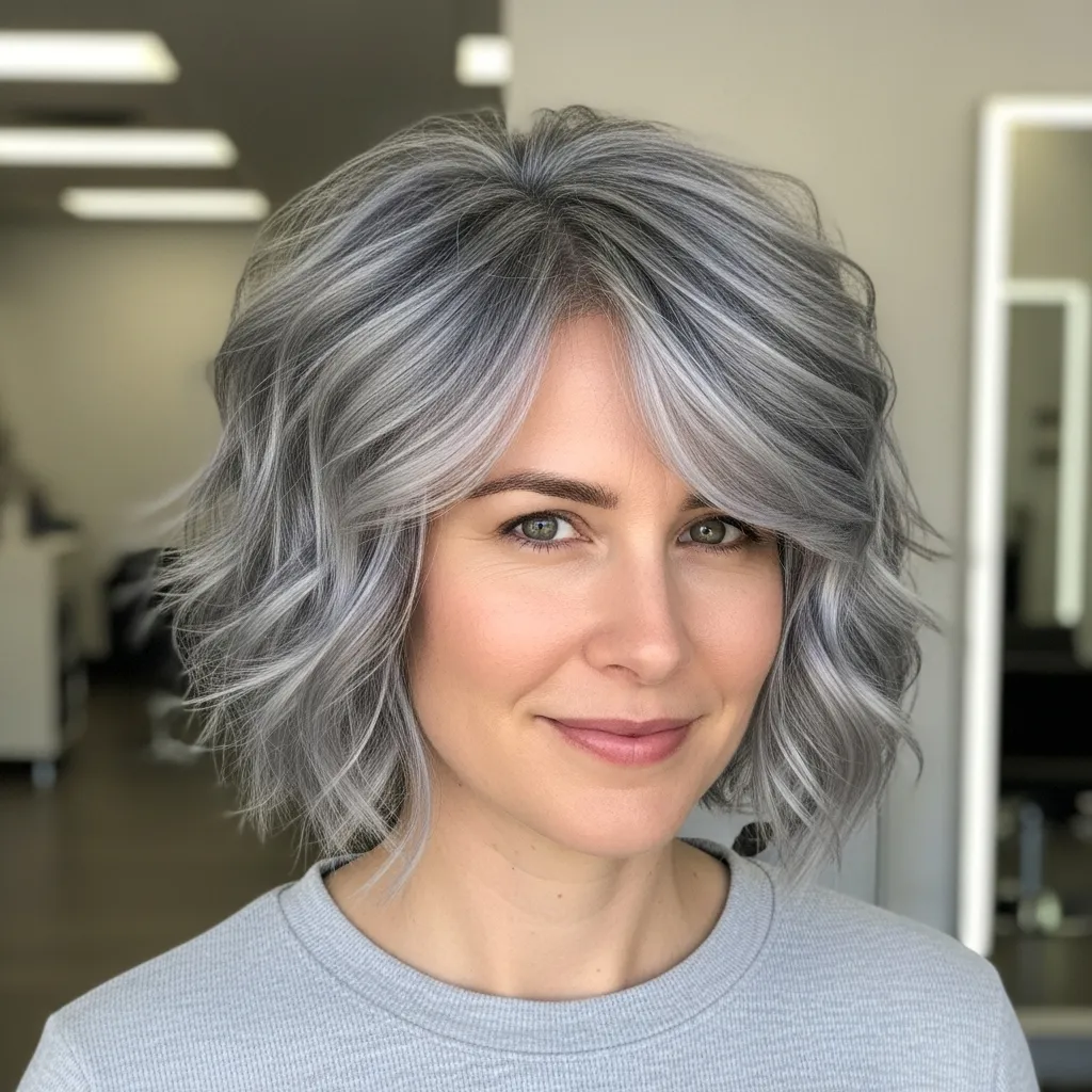This style is particularly great for softening angular features while giving your gray hair a stylish, modern edge. It transitions easily from casual daytime looks to evening elegance.