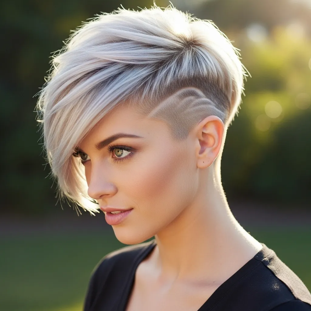 For a daring edge, add a side undercut to your pixie. The shaved section contrasts beautifully with wavy texture, creating a bold, modern statement.