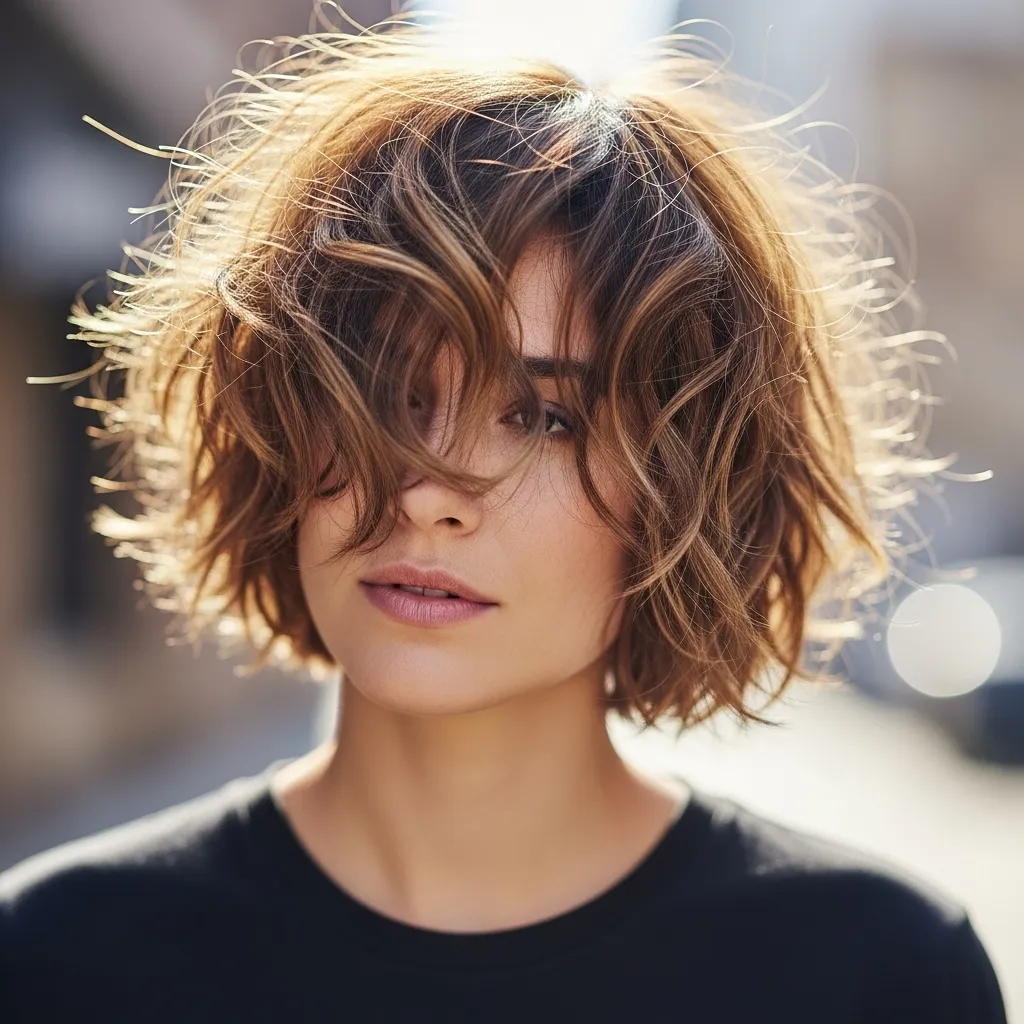 The combination of wavy texture and choppy layers makes this style perfect for women who love artistic, fashion-forward hairstyles.
