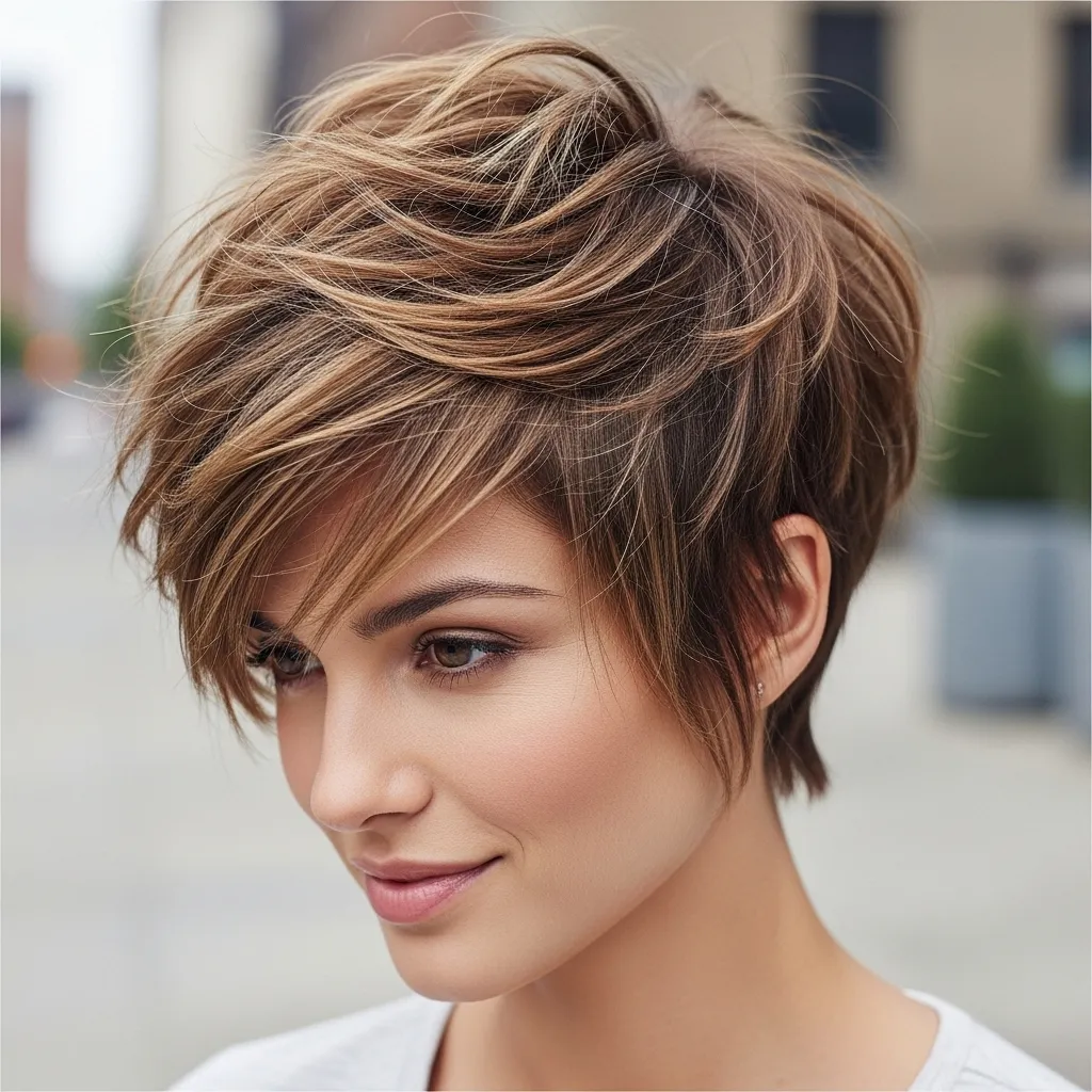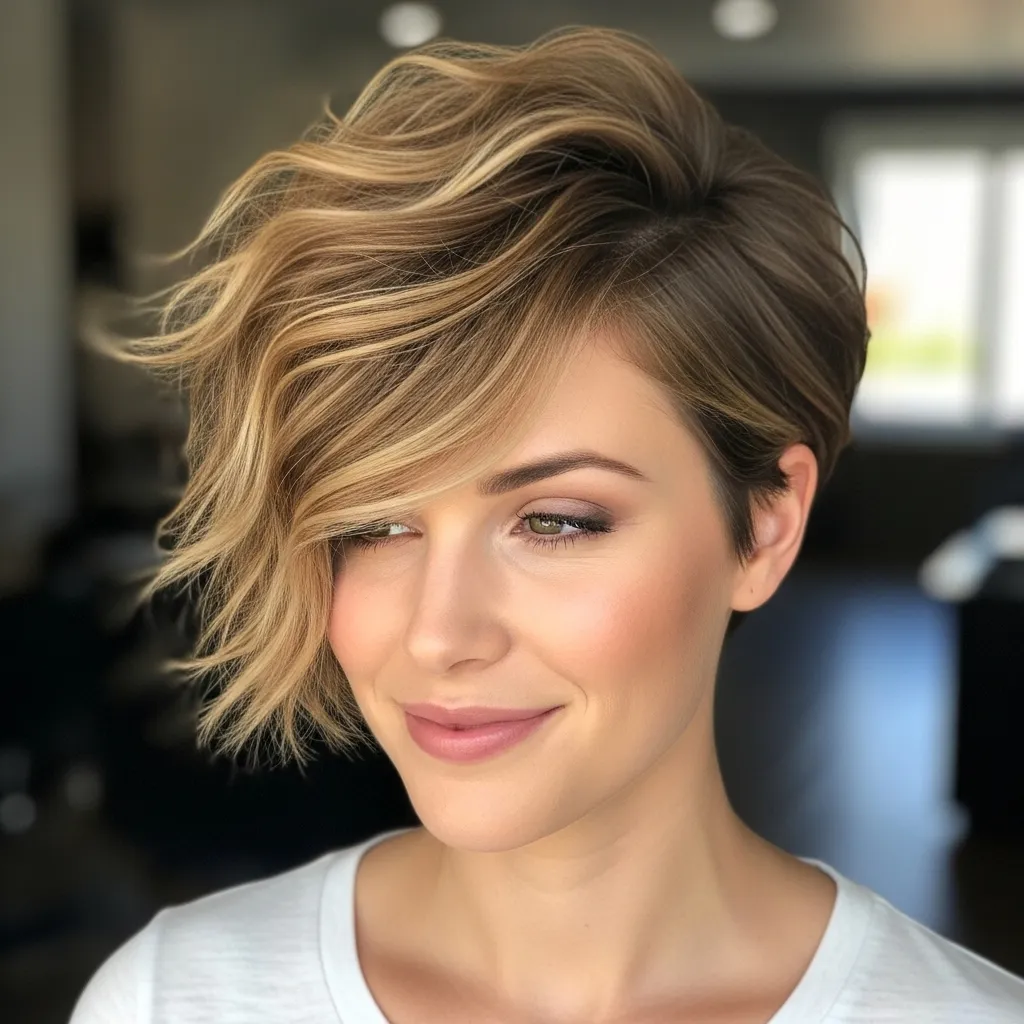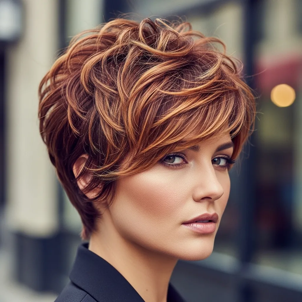 Adding volume at the crown of a pixie cut gives your style a lifted, glamorous effect. The height balances wavy texture, creating a polished yet bold appearance.