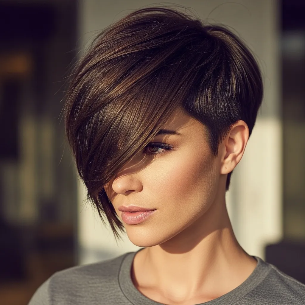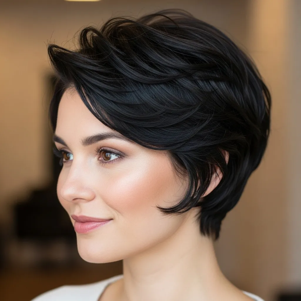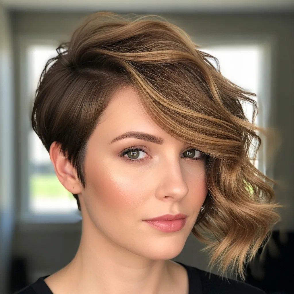 An asymmetrical pixie features one side longer than the other, giving the style a modern, edgy twist. It’s bold yet sophisticated, perfect for women who love to stand out.